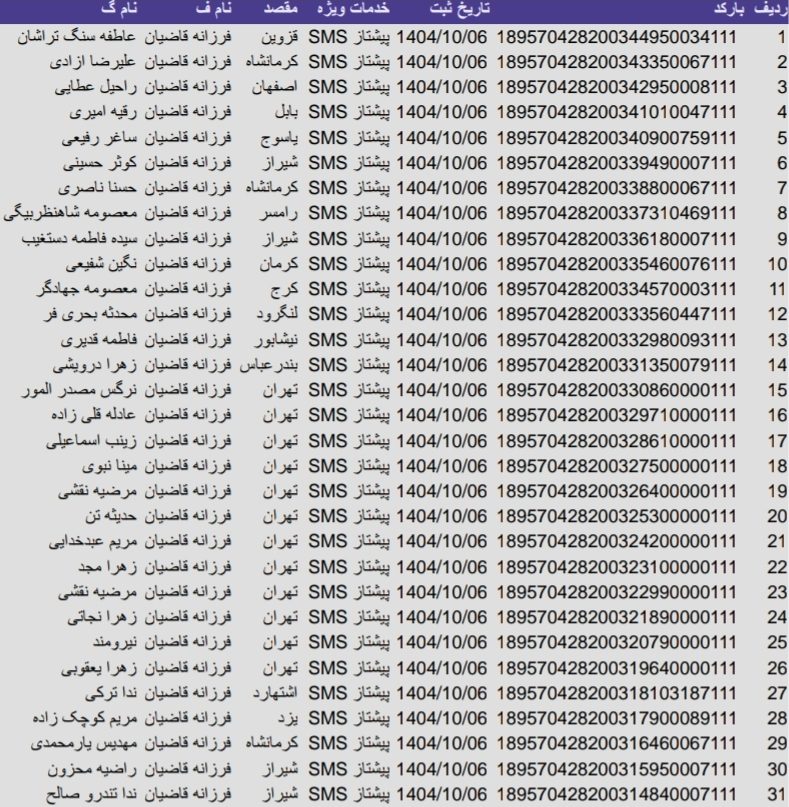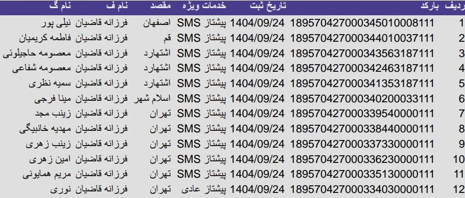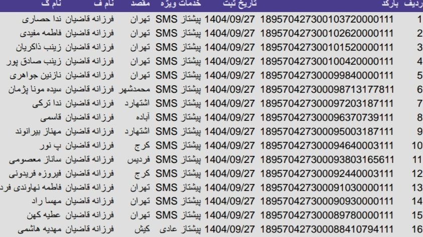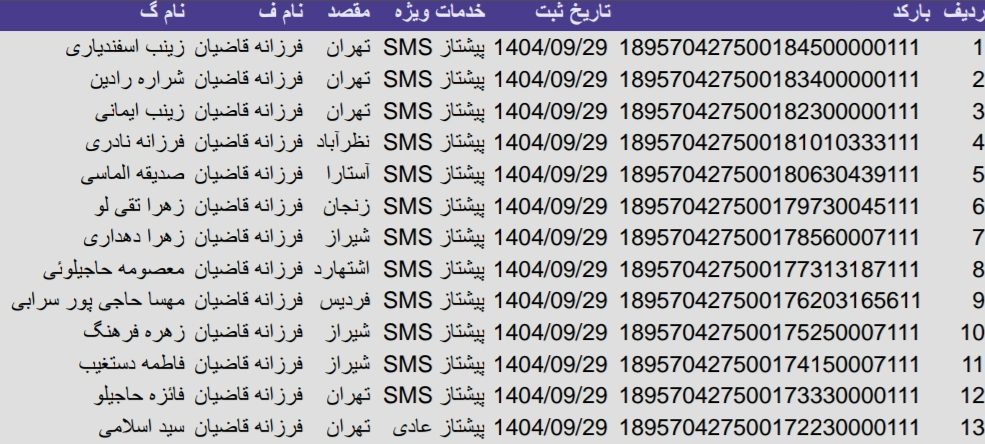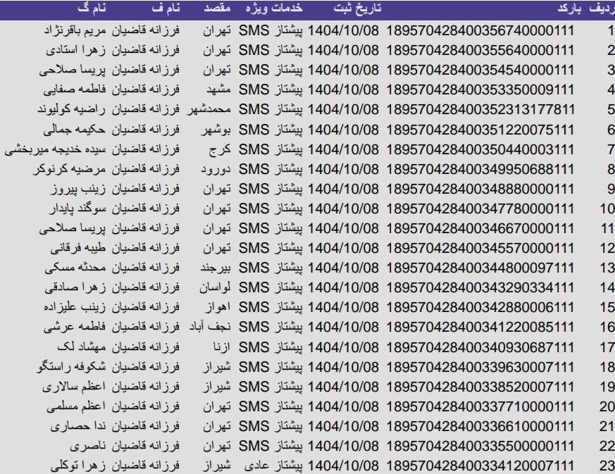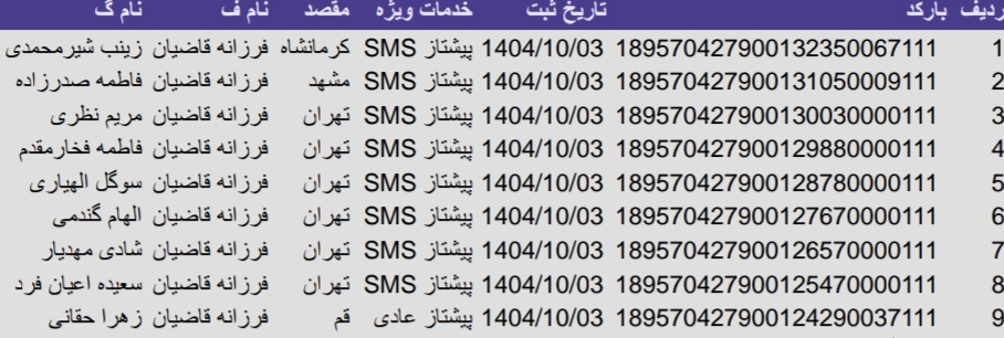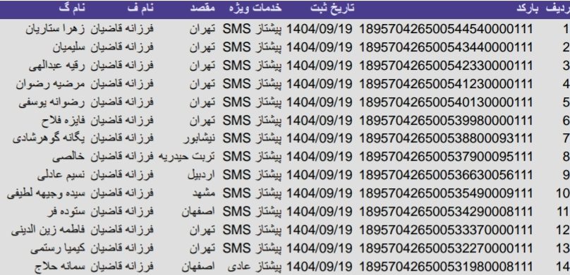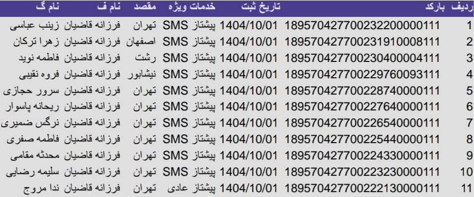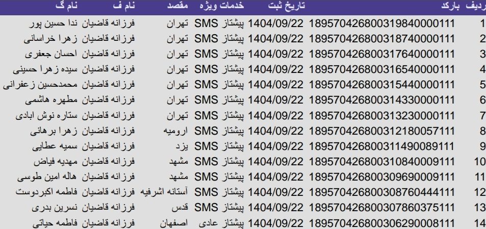 • بارکد مرسولات پستی